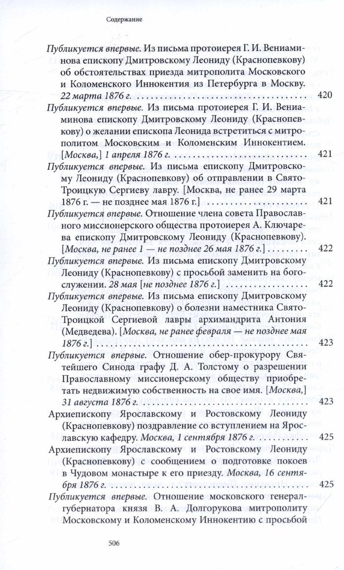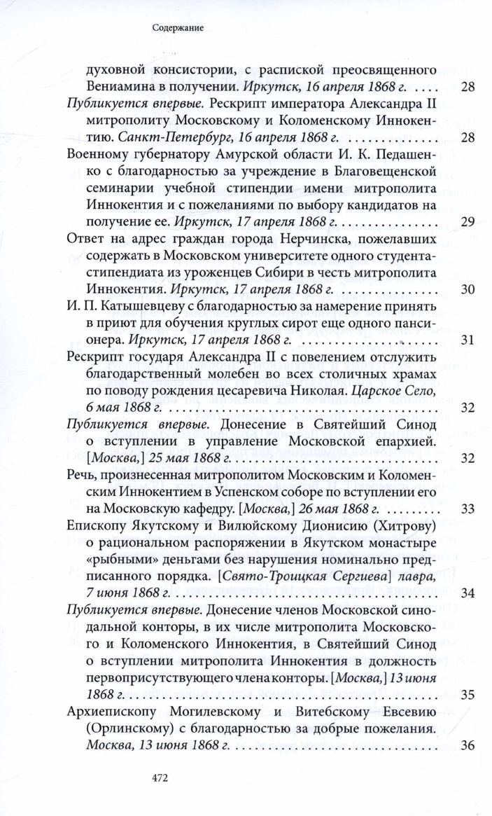 Собрание сочинений и писем : в 7 т. / свт. Иннокентий Московский, просветитель Америки и Сибири ; [редкол. : еп. Якутский и Ленский Роман (Лукин) и др.]. - Москва : Изд-во Московской патриархии Русской Православной Церкви, 2013-. - 22 см см. ISBN 978-5-88017-328-0 (общ.) : 500 р. - 1000 экз. Т. 6: Московский митрополит (1868-1879) / [редкол. : еп. Якутский и Ленский Роман (Лукин) и др. ; И. А. Курляндский, сост., коммент.]. - 2014. - 510, [1] с., [1] л. портр.