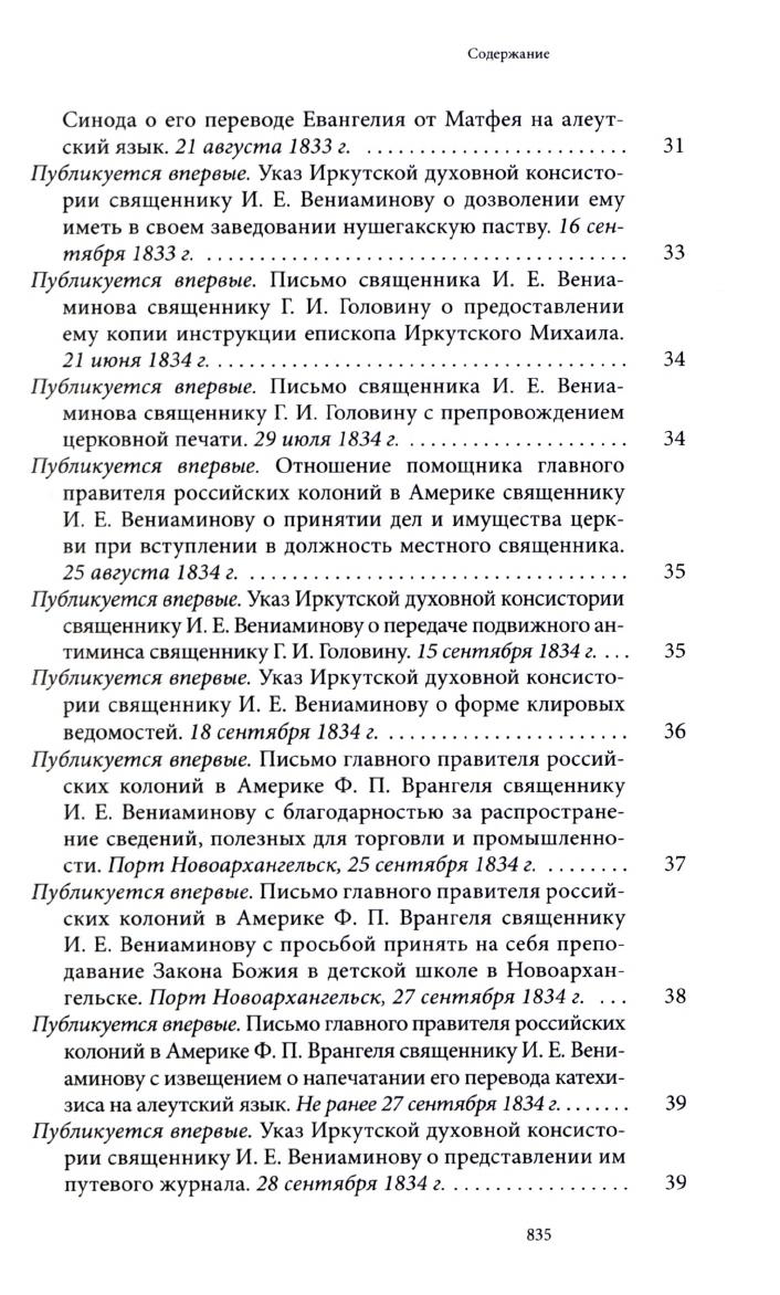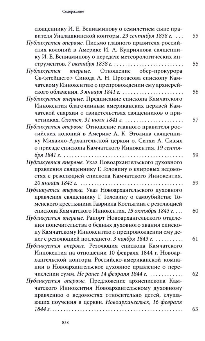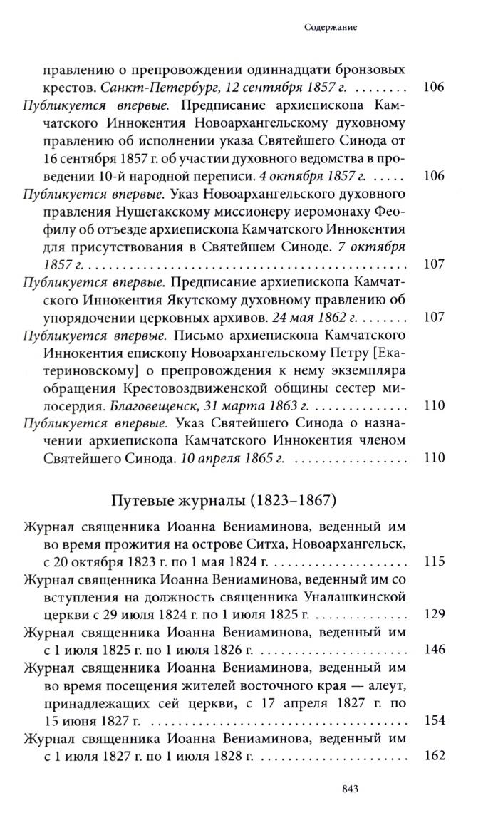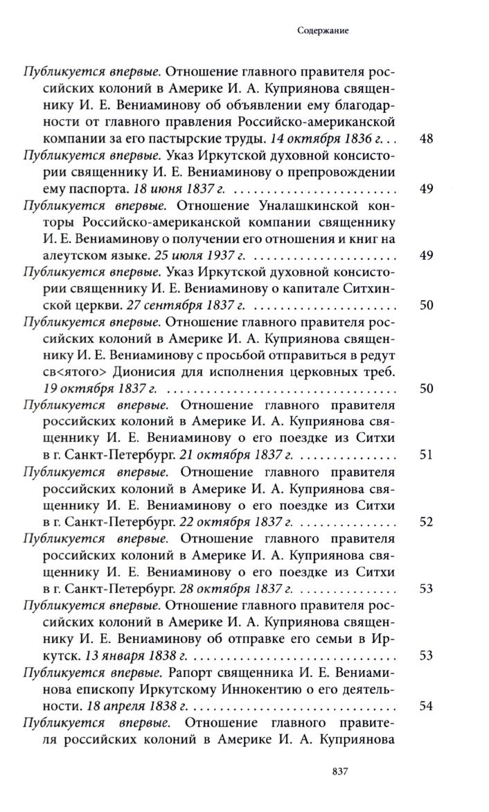 Собрание сочинений и писем : в 7 т. / свт. Иннокентий Московский, просветитель Америки и Сибири ; [редкол. : еп. Якутский и Ленский Роман (Лукин) и др.]. - Москва : Изд-во Московской патриархии Русской Православной Церкви, 2013-. - 22 см см. ISBN 978-5-88017-328-0 (общ.) : 500 р. - 1000 экз. Т. 7: Архив Аляскинской епархии (1824-1865) ; Путевые журналы (1823-1867) ; История репрессий и реабилитации членов семьи Вениаминовых (1930-1989). - 2015. - 845, [1] с., [1] л. цв. ил.