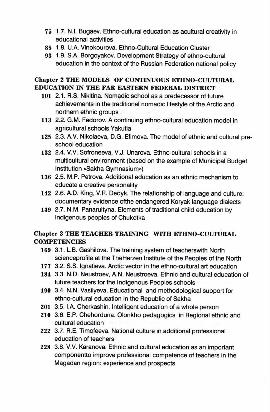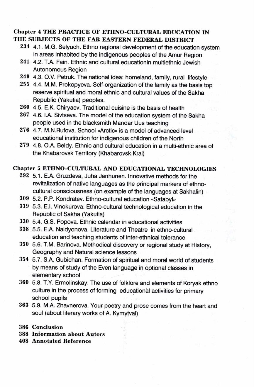Этнокультурное образование в Дальневосточном федеральном округе Российской Федерации = Ethno-cultural education far eastern federal district the Russian Federation / М-во образования Республики Саха (Якутия), Ин-т нац. школ Респ. Саха (Якутия) ; [составители: У. А. Винокурова, д.социол.н., к.п.н., проф., С. С. Семенова, к.п.н. ; ответственный редактор У. А. Винокурова ; перевод на английский язык М. Ю. Цагарели]. - Якутск : Медиа-холдинг "Якутия", 2015. - 415 с. : ил., табл. ).