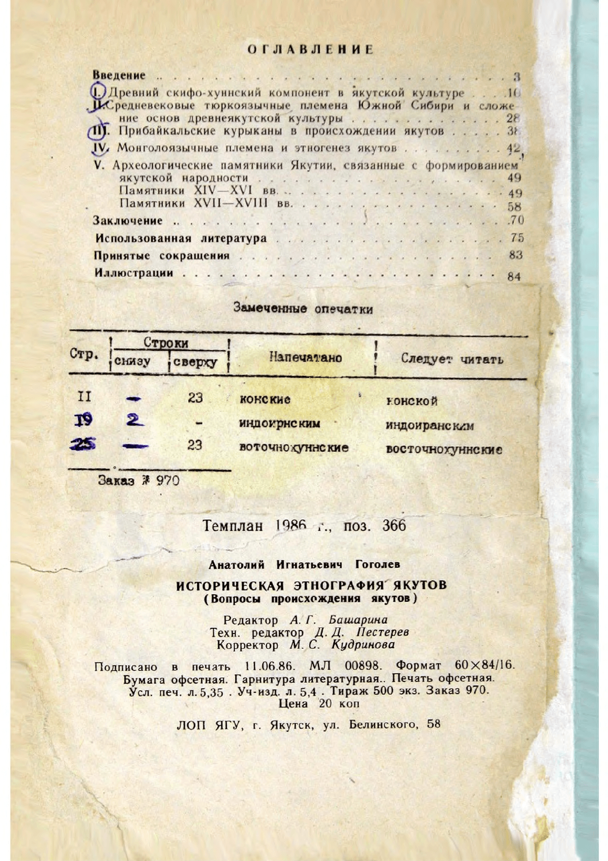 - 1. Гоголев Анатолий Игнатьевич. Историческая этнография якутов, 1980