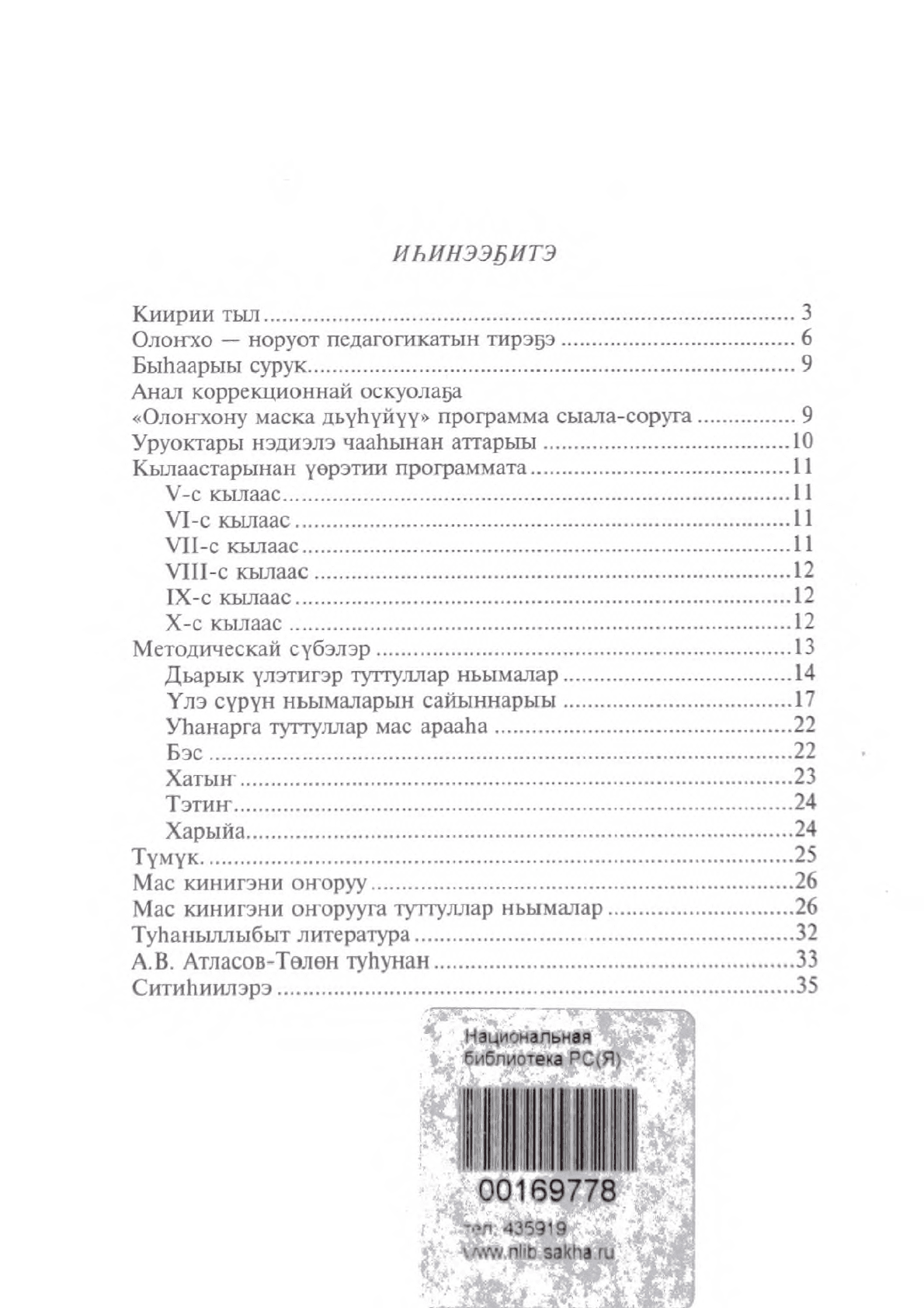 Книга преподавателя Амгинской коррекционной школы-интерната восьмого вида, А. В. Атласова содержит программу обучения детей-инвалидов с 5-8 классов "Образы олонхо" (работа по дереву)