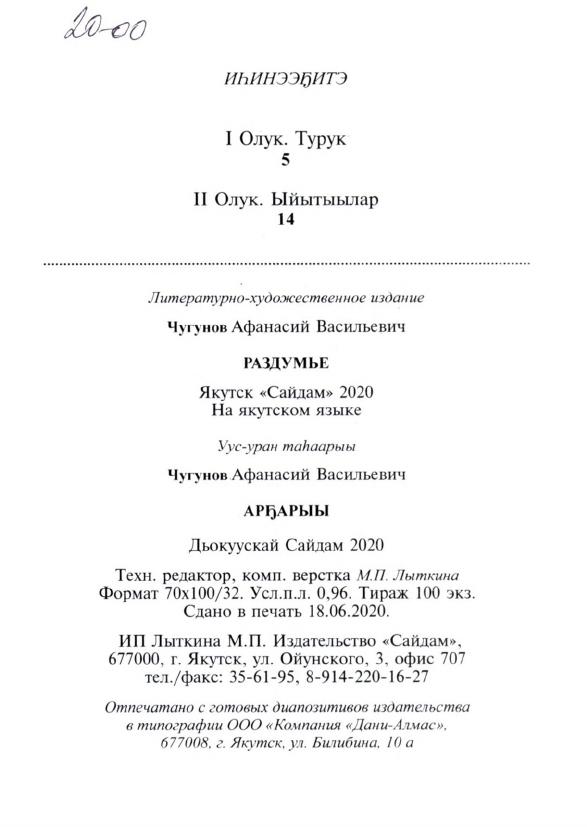 Арҕарыы : хоһооннор / Афанасий Чугунов. - Дьокуускай : Сайдам, 2020. - 23, [1] с.
