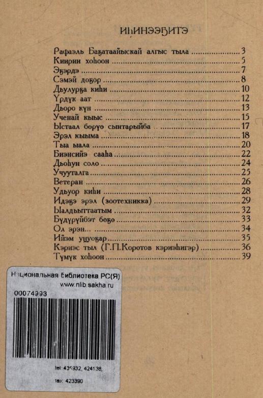 Ытык дьонум : [хоһооннор] / Афанасий Чугунов ; [киирии тыл автора Рафаэль Баҕатаайыскай] ; "Cаха сирин литератора" ассоциацията. - Дьокуускай : Ситим, 1994. - 39, [1] с.