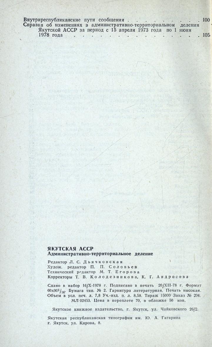 Якутская АССР ; Административно-территориальное деление : на 1 июня 1978 г.