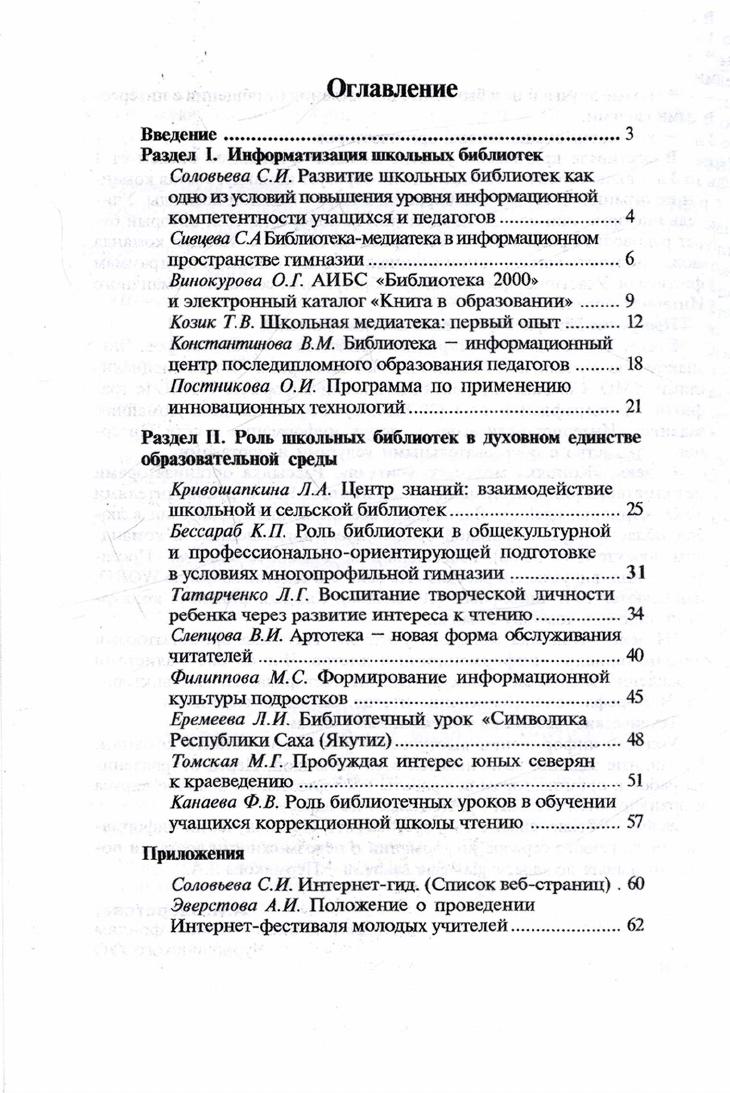 В издании представлены статьи, отражающие профессиональную деятельность отдельных библиотекарей системы образования Республики Саха (Якутия) в условиях модернизации школьных библиотек