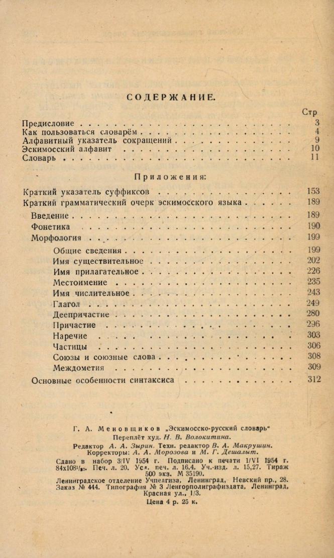 Эскимосско-русский словарь : с кратким указателем суффиксов и очерком грамматики эскимосского языка : 4700 слов / Г. А. Меновщиков. - Ленинград : Учпедгиз, Ленинградское отделение, 1954. - 319, [1] с.