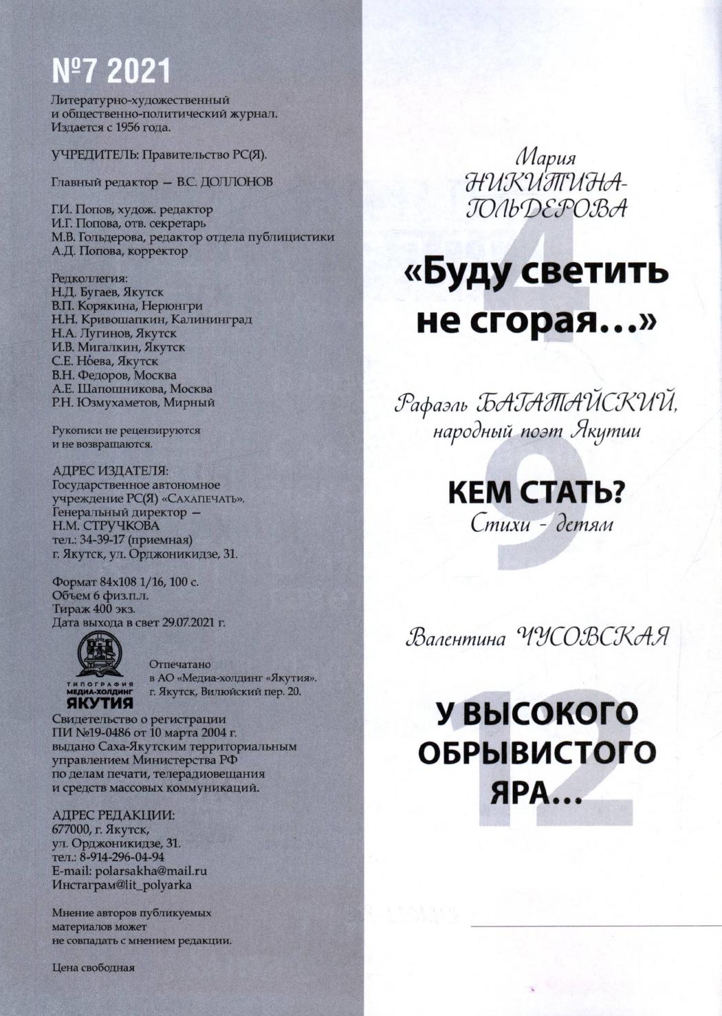 - 3. Полярная звезда: литературно-художественный и общественно-политический журнал, 2021, №3