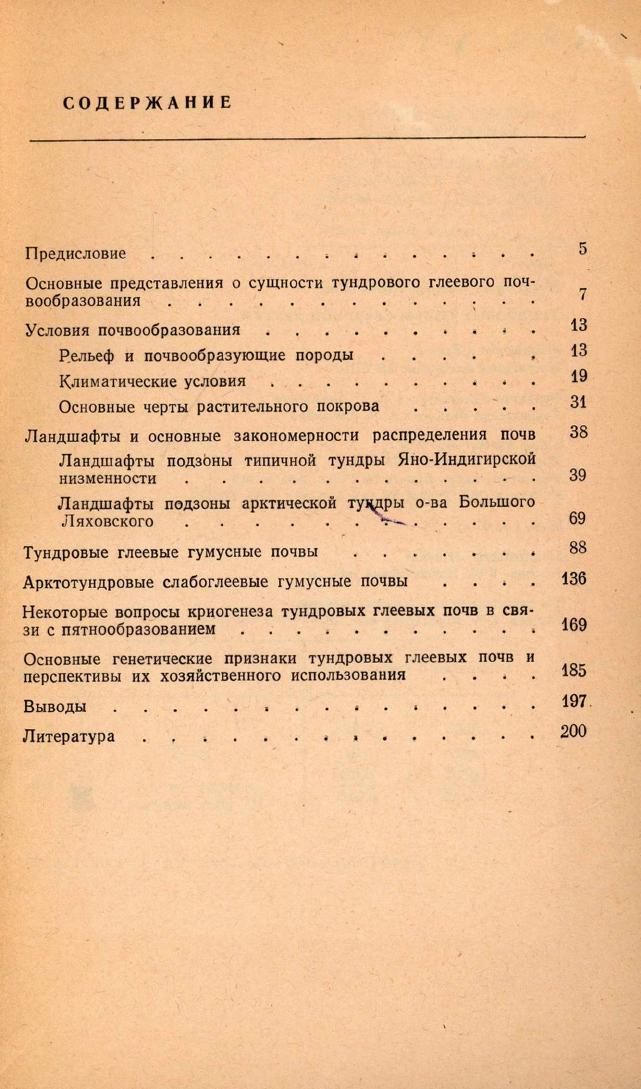 Работа посвящена генезису и географии почв неизученной части тундровой зоны - Приморской низменности Якутии и Новосибирским островам. Дается обзор литературы в аспекте развития основных представлений о тундровом глеевом почвообразовании. Подробно освещены условия почвообразования исследованной территории, основные закономерности распределения ландшафтов, их краткое описание, главные черты, географии почв в пределах двух тундровых подзон (типичной и арктической) северной Якутии. Приводится подробная генетическая характеристика двух ведущих подзональных подтипов почв тундровой зоны северной Якутии. Рассматривается влияние криогенных процессов на свойства почв. Дано обобщенное описание типа тундровых глеевых почв в-его подзонально-фациальном варьировании, предлагаются пути сельскохозяйственного использования территории