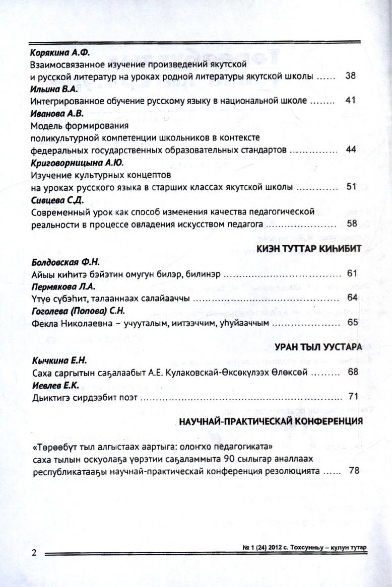 - 1. Төрөөбүт тыл уонна литература: саха тылын уонна литературатын учууталыгар аналлаах сылга түөртэ тахсар научнай-методическай сурунаал, 2012, №2 (25) (муус устар - бэс ыйа)