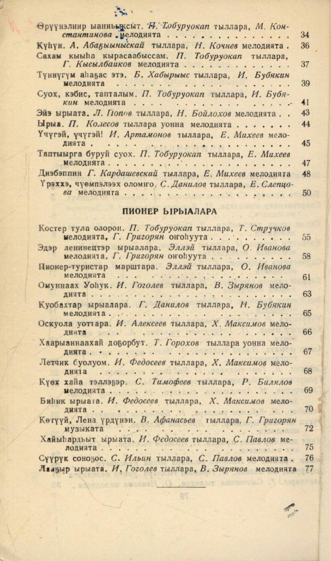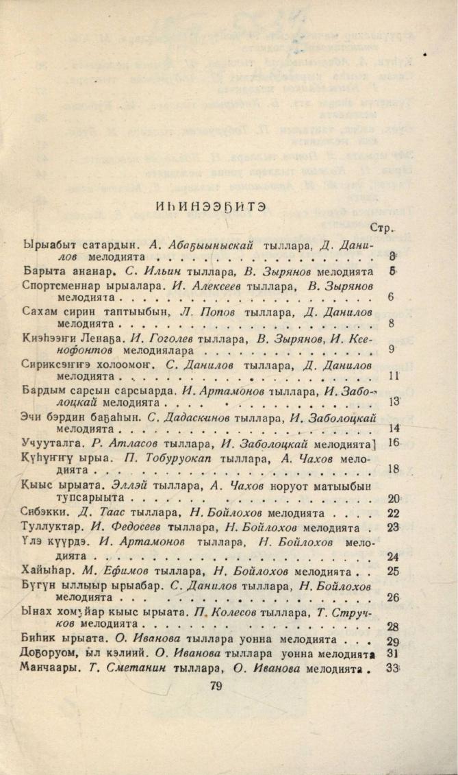 Ыччат ыллыыр / бэчээккэ бэлэмнээтилэр: Н. И. Бойлохов, И. А. Бубякин ; редактордар: Н. И. Бажов, Г. А. Григорян. - Якутск : Саха сиринээҕи кинигэ издательствота, 1959. - 79, [1] с.