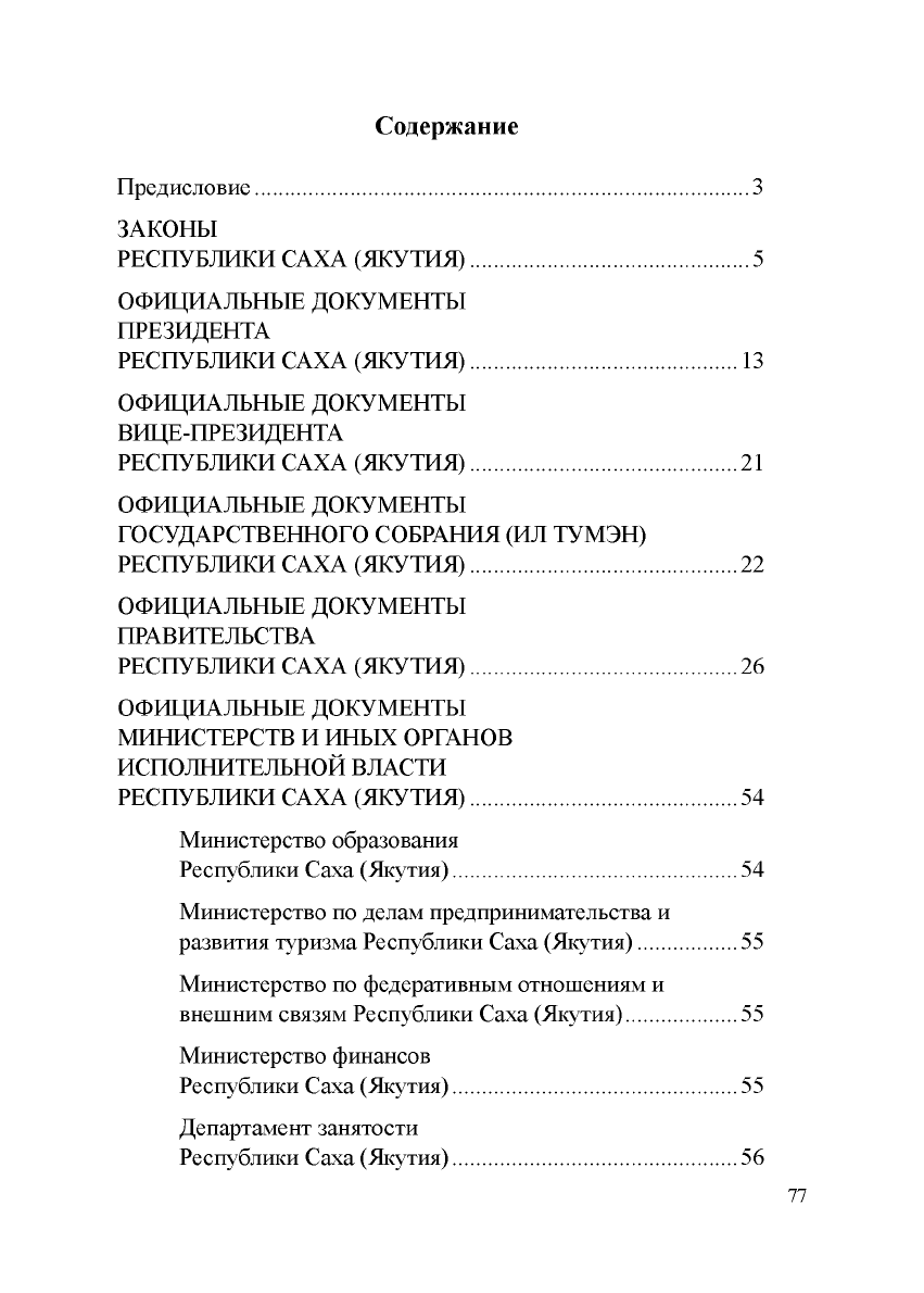 Библиографический указатель «Текущее законодательство Республики Саха (Якутия)» предназначен для широкого круга читателей в целях распространения в республике информации о публикациях официальных документов. В указатель включаются сведения о законах и иных нормативных актах, опубликованных в официальных республиканских периодических изданиях