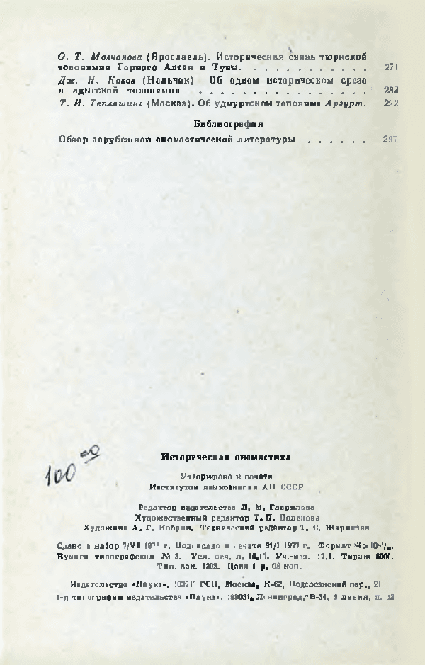 Историческая ономастика: [сборник статей] / АН СССР, Ин-т языкознания ; редколлегия: ... А. В. Суперанская (отв. ред.)]. - Москва: Наука, 1977. - 308 с.