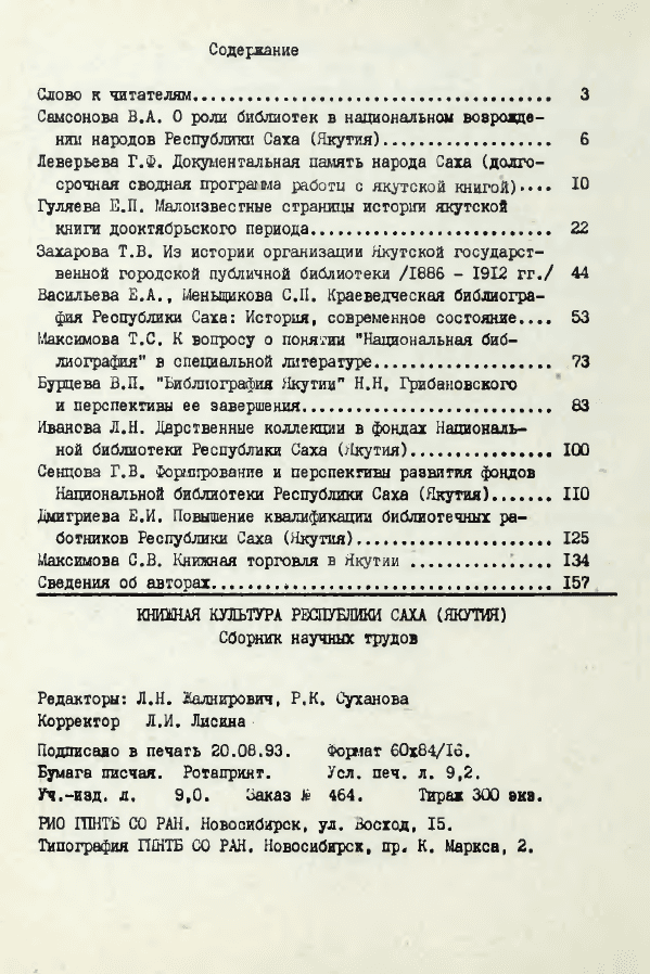 Книжная культура Республики Саха (Якутия) : Сб.науч.тр / ГПНТБ СО РАН. - Новосибирск, 1993. - 157 с. ISBN 5-7623-0807-3.