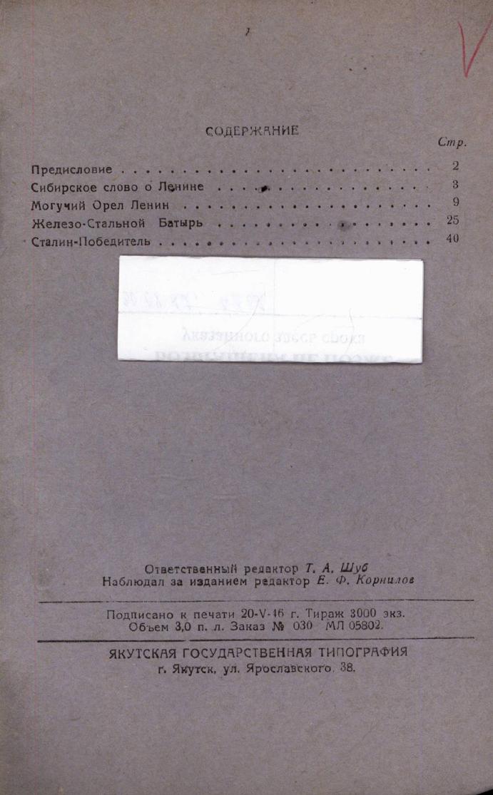 Сказанья о вождях : [в стихах] / М. Н. Тимофеев-Терешкин ; перевод с якутского, предисловие А. Ольхона. - Якутск : Якутское книжное издательство, 1946. - 49 с.
