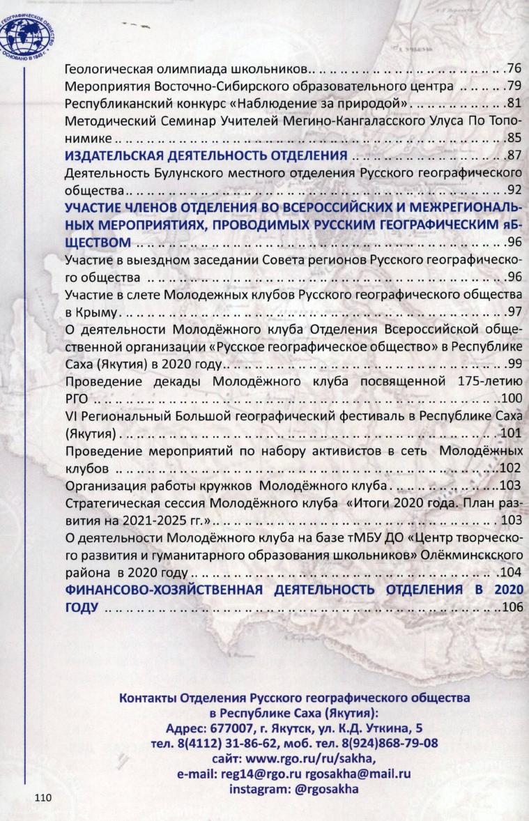 Деятельность Отделения Русского географического общества в Республике Саха (Якутия) за 2020 год : информационный бюллетень / Русское географическое общество, Отделение в Республике Саха (Якутия). - Якутск: ЯО РГО, 2021 - 110 с. : цв. ил., портр. - 22 см.