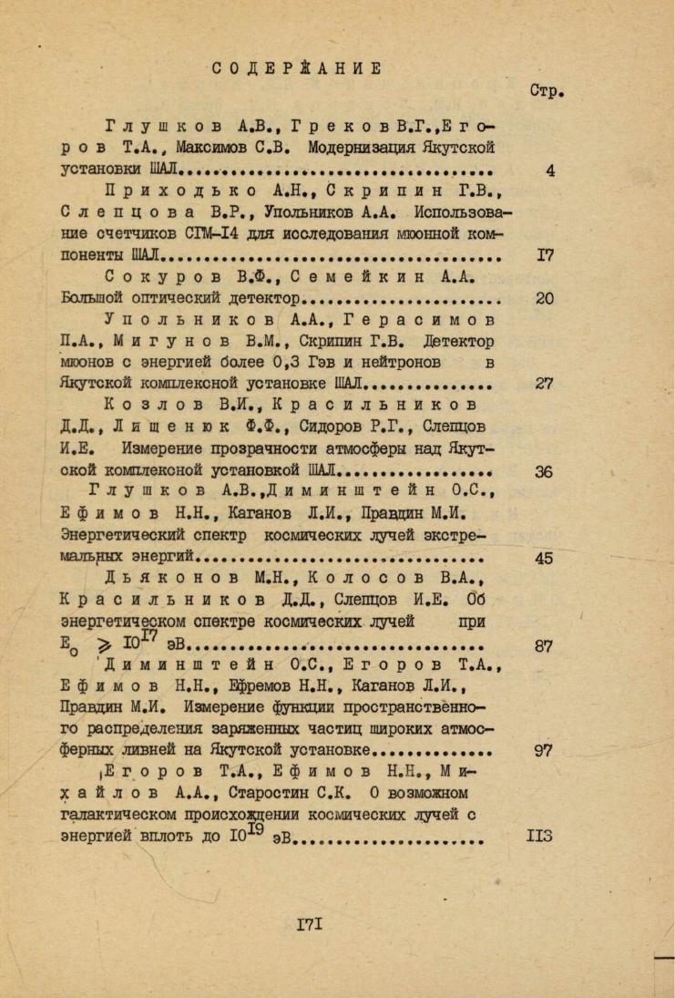 Характеристики широких атмосферных ливней космических лучей сверхвысоких энергий : сборник научных трудов / Академия наук СССР, Якутский филиал Сибирского отделения, Институт космофизических исследований и аэрономии ; [ответственный редактор к.ф.-м.н. И. Е. Слепцов]. - Якутск : Издание Якутского филиала СО АН СССР, 1976. - 179 с.
