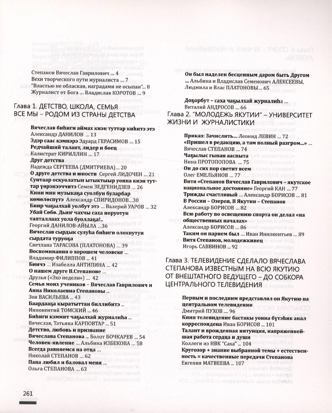 В марте 2012 года исполнилось бы 65 лет выдающемуся журналисту, телевизионному обозревателю и репортеру, автору нескольких книг и документальных фильмов о Якутии, блестящему спортивному комментатору Вячеславу Степанову. В книгу вошли воспоминания о нем родных, друзей, учителей и коллег, избранные статьи и очерки самого журналиста, материалы о лауреатах республиканской журналисткой премии и чемпионатах Якутии по борьбе самбо, посвященных его памяти. Впервые публикуются его сценарии и закадровые тексты телевизионных передач, дневниковые записи и комментарии о работе его собкором Центрального телевидения