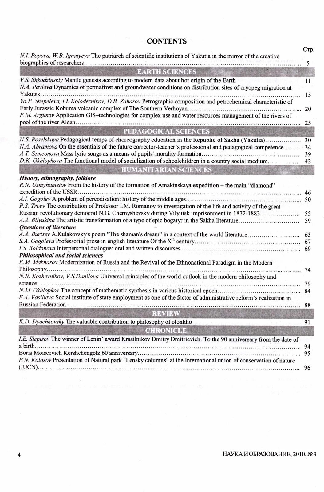 Наука и образование: научный и общественно-политический журнал / учредители: Академия наук Республики Саха (Якутия), Якутский научный центр СО РАН, Северо-Восточный федеральный университет им. М. К. Аммосова, Министерство науки и профессионального образования РС (Я), Министерство образования Республики Саха (Якутия) ; главный редактор И. И. Колодезников. – Якутск : Издательство ЯНЦ СО РАН, 1996-. – Ежекварт. – ISSN 2073-8129 (print). – Текст : непосредственный. — 2010, N 3 (59). – 99 с.
