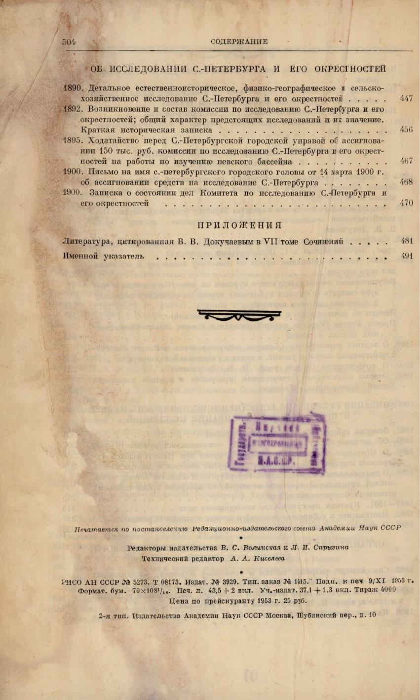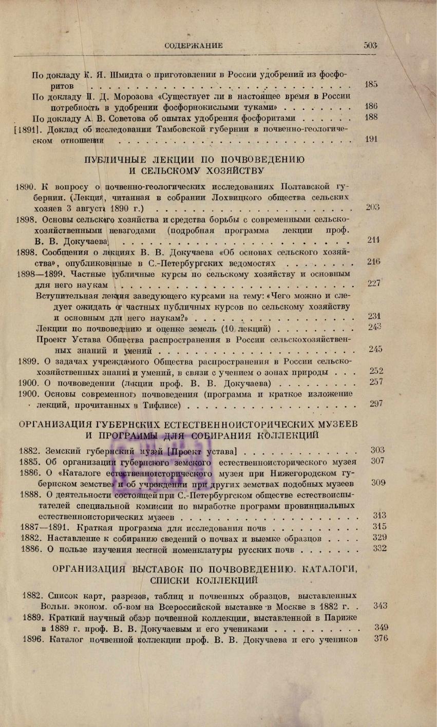 Сочинения : [в 9 томах] / В. В. Докучаев ; Академия наук СССР. - Москва ; Ленинград : Издательство Академии наук СССР, 1949-1961. - 27 см. [Т.] 7: Организация почвенных учреждений и вопросы сельского хозяйства в России : статьи и доклады. Популярные лекции. 1880-1900 / [отв. ред.: академики Л. И. Прасолов и И. В. Тюрин ; вступ. статья В. Н. Заварицкого]. - М. : Изд-во Акад. наук СССР. - 504 с., 2 л. табл.