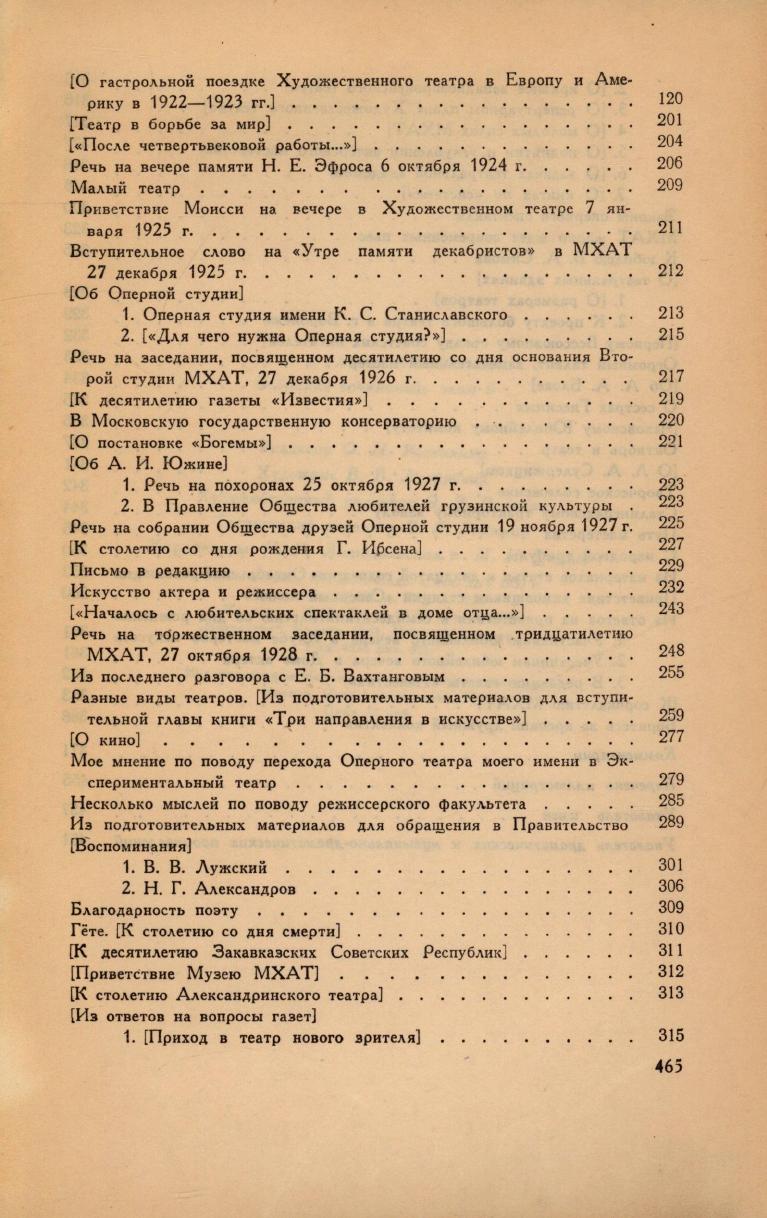 Собрание сочинений : в 8 томах / К. С. Станиславский ; подготовка текста и примечания Н. Д. Волкова, В. Р. Канатчиковой. - Москва : Искусство, 1954-. - 23 см. Т. 6: Статьи. Речи. Отклики. Заметки. Воспоминания : 1917-1938 / составление, редактирование и комментарии Н. Н. Чушкина и Г. В. Кристи, комментарии написаны при участии С. В. Мелик-Захарова. - 1959. - 466 с., [11] л. ил.