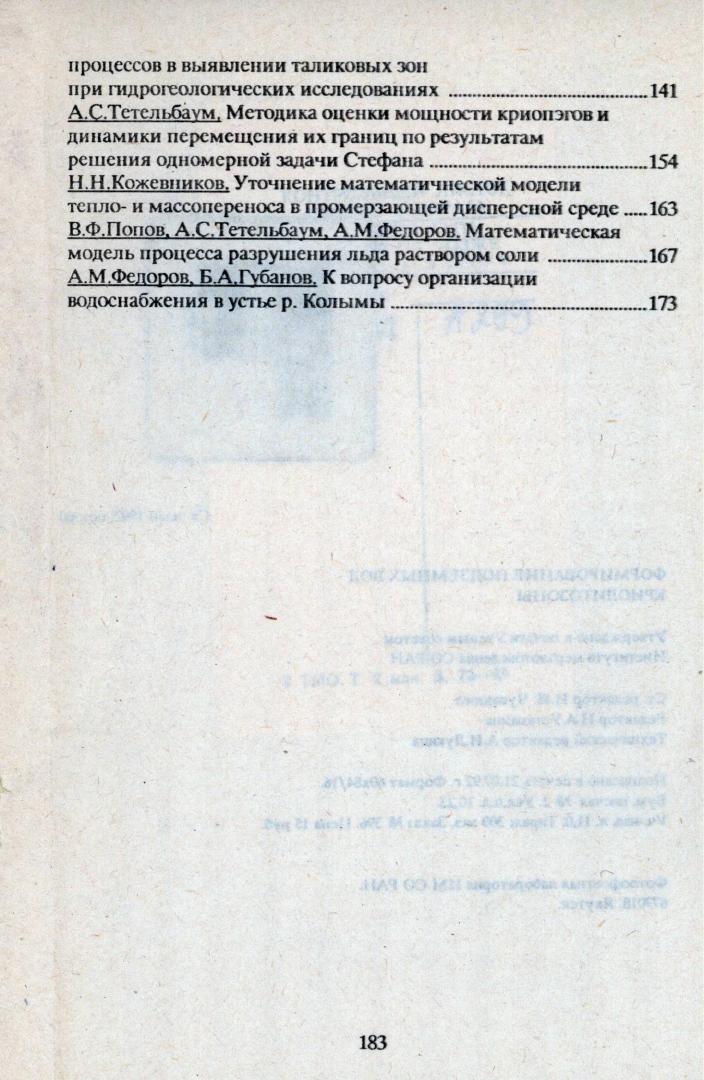 Формирование подземных вод криолитозоны : сборник научных трудов / Российская академия наук., Сибирское отделение, Институт мерзлотоведения ; ответственный редактор В. М. Пигузова. - Якутск : ИМ СО РАН, 1992. - 183 с.