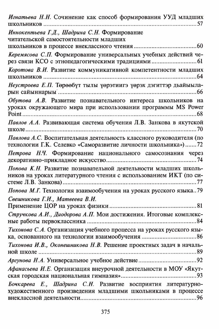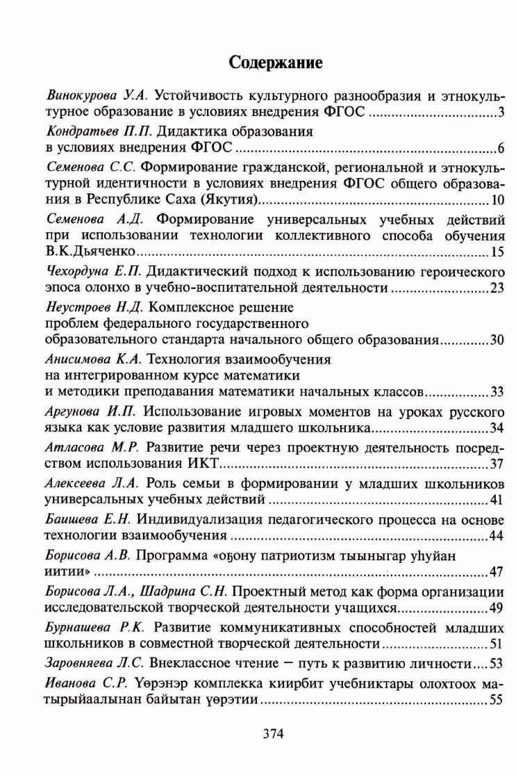 Дидактика образования в условиях внедрения ФГОС : (материалы республиканской научно-практической конференции, 6 декабря 2011 г.) / [составители: кандидат филологических наук Л. П. Борисова, кандидат педагогических наук Е. П. Павлова, кандидат педагогических наук А. В. Оконешникова, доктор педагогических наук А. А. Григорьева ; ответственный редактор доктор педагогических наук, профессор А. А. Григорьева]. - Якутск : Офсет, 2012. - 381 с.