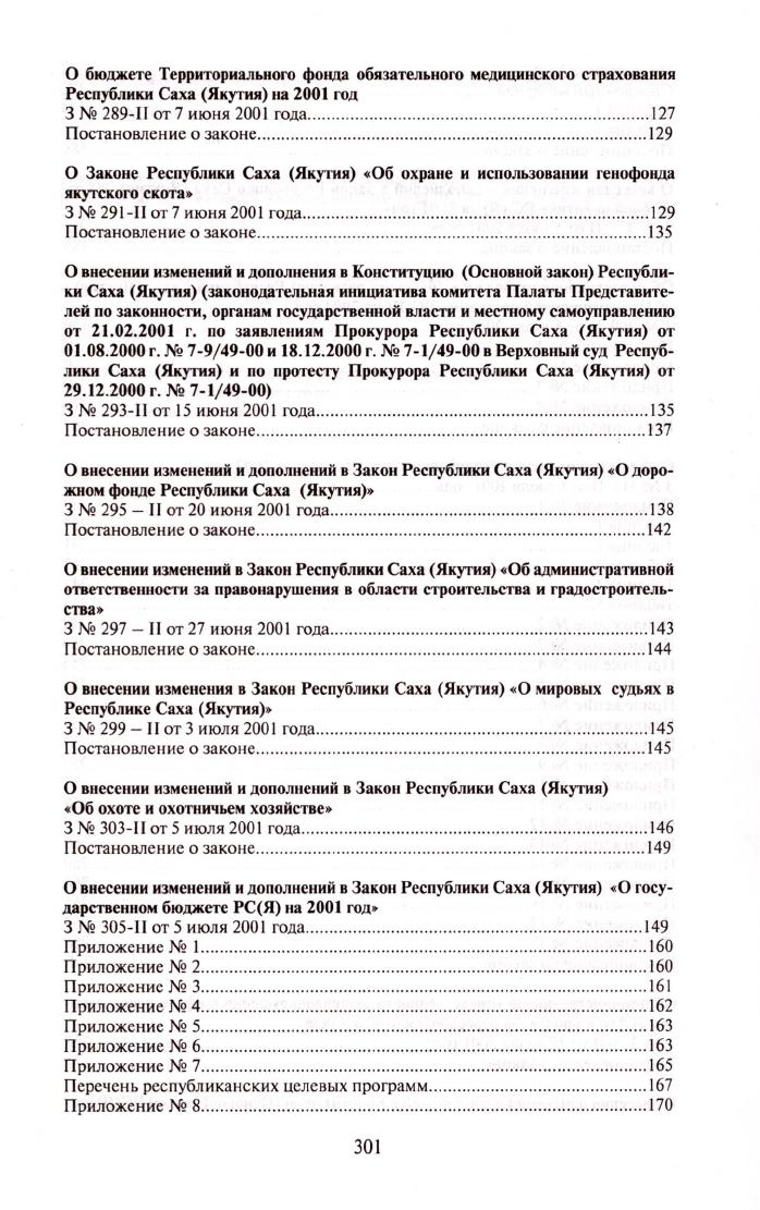 Сборник законов Республики Саха (Якутия), принятых Государственным Собранием (Ил Тумэн) Республики Саха (Якутия) второго созыва в 2001 году