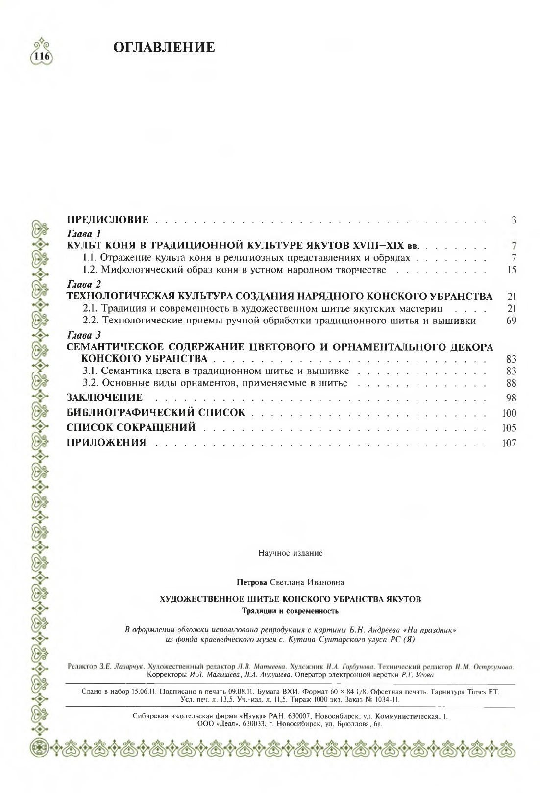 Монография посвящена основным художественным и технологическим особенностям изготовления предметов традиционного конского убранства: попон (чепраков, кычымов) и наседелий (тэпсэ). Цель публикации - оказание методической помощи современным мастерам народного прикладного творчества, систематизация знаний об истоках традиционной духовной и материальной культуры якутов, древних ритуалах и обрядах с их фольклорными устно-поэтическими произведениями, объединяющими символико-смысловую содержательность традиционного мировосприятия и мировоззрения. В работе исследуется образное содержание художественного оформления нарядного конского убранства в сопоставлении с традиционным мифологическим материалом и устным народным творчеством, описываются технологии и приемы традиционного шитья и вышивки, раскрывается семантика цвета, характеризуются основные виды орнамента. Книга содержит богатый иллюстративный материал. Для мастеров прикладного творчества, ориентированных на этнические традиции, искусствоведов и фольклористов