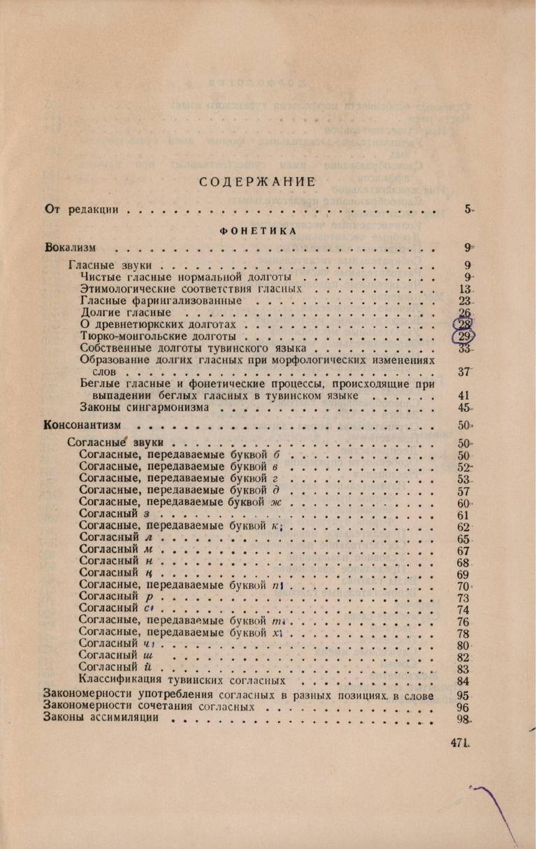 Предлагаемая вниманию читателя "Грамматика тувинского языка" — первый опыт систематического описания фонетических и грамматических явлений этого языка, осуществленный в советскую эпоху. Отличительной чертой публикуемой "Грамматики" является сохранение принципа сравнительного освещения фонетических и грамматических явлений, впервые столь блестяще осуществленного на материале тувинского языка Н. Ф. Катановым. В наибольшей степени данные сравнения с другими тюркскими языками использованы в разделе "Фонетика". Разделы "Глагол" и "Служебные слова" содержат много примеров из тувинской художественной литературы и печатных сборников фольклора, изданных Тувинским НИИЯЛИ, а в необходимых случаях также и из переводной художественной литературы