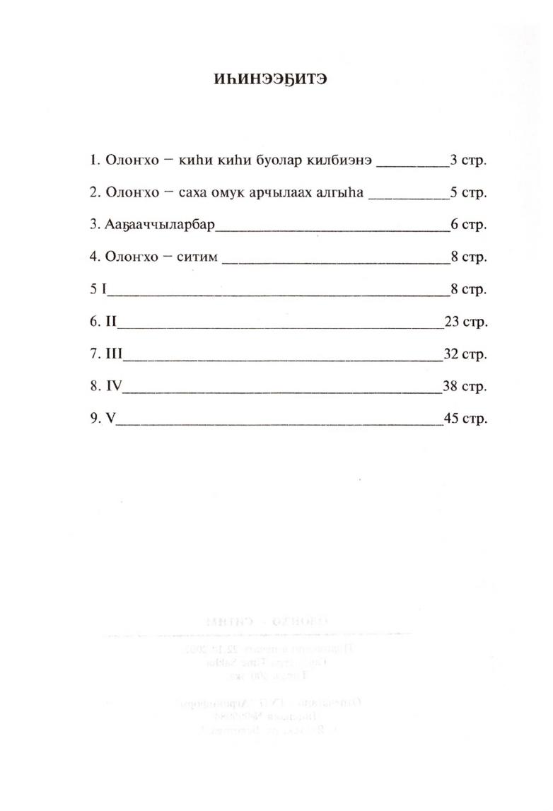 Олоҥхо - ситим : (олоҥхо суолтата) / Күндүүнэ ; сыанабылы биэрдилэр: педагогическай наука доктора, профессор И. С. Портнягин, педагогическай наука кандидата, доцент Л. С. Ядрихинская. - Дьокуускай : Агроинформ, 2003. - 51, [4] с.