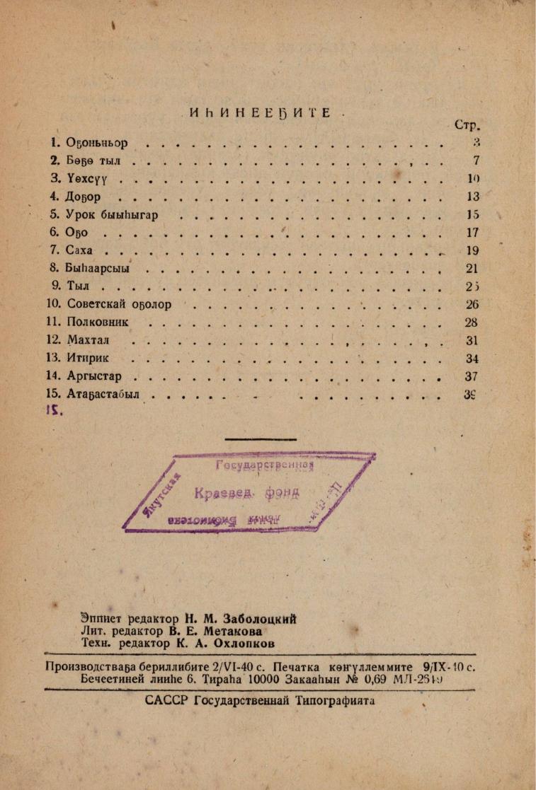 Кэпсээннэр / Амма Аччыгыйа. - Якутскай : САССР государственнай издательствата, 1940. - 96, [2] с.