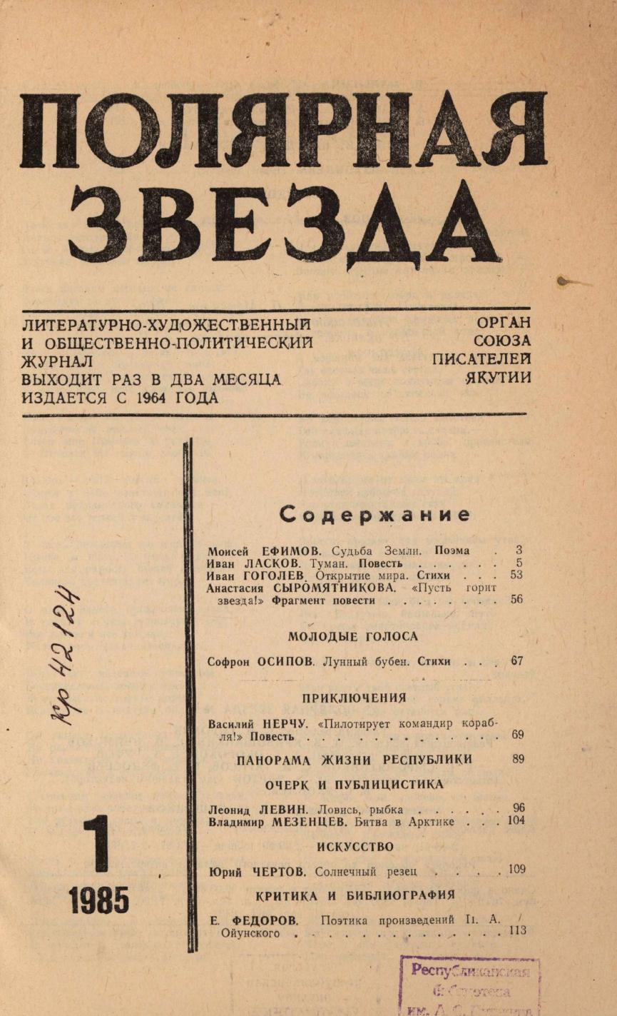 - Периодические издания Якутии (конец XIX – XXI вв.) > Журналы > Полярная звезда > 1985,