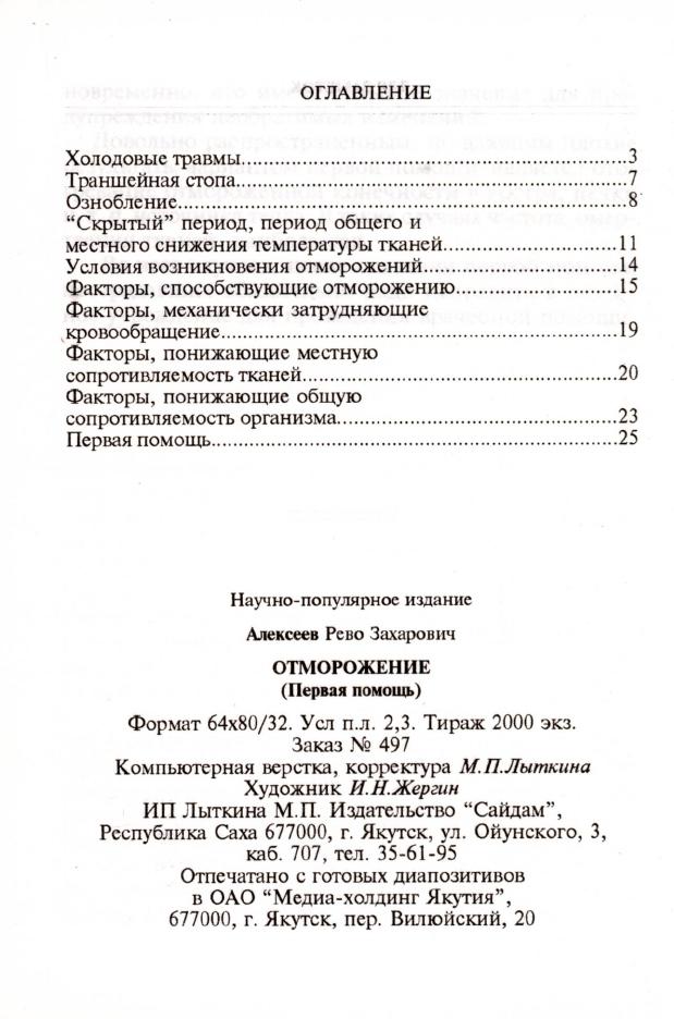 Первая помощь при отморожении / Р. З. Алексеев. - Якутск : Сайдам, 2011. - 29, [3] с.