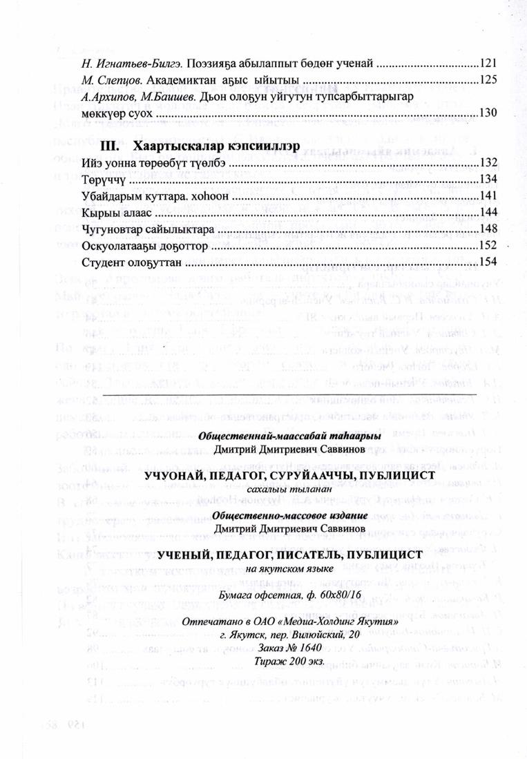 Учуонай, педагог, суруйааччы, публицист : [А. В. Чугунов туһунан] / Д. Д. Саввинов. - Дьокуускай : Медиа-холдинг "Якутия", 2017. - 159, [1] с.