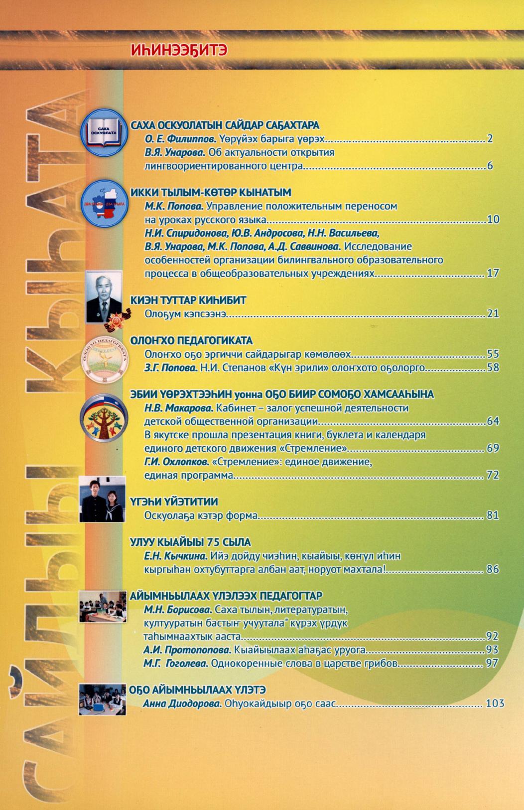 Сайдыы кыһата : научно-методический журнал / гл. ред. А. Д. Саввинова. - Дьокуускай : Компания Дани Алмас, 2015, N 1 (5). - 104 c.