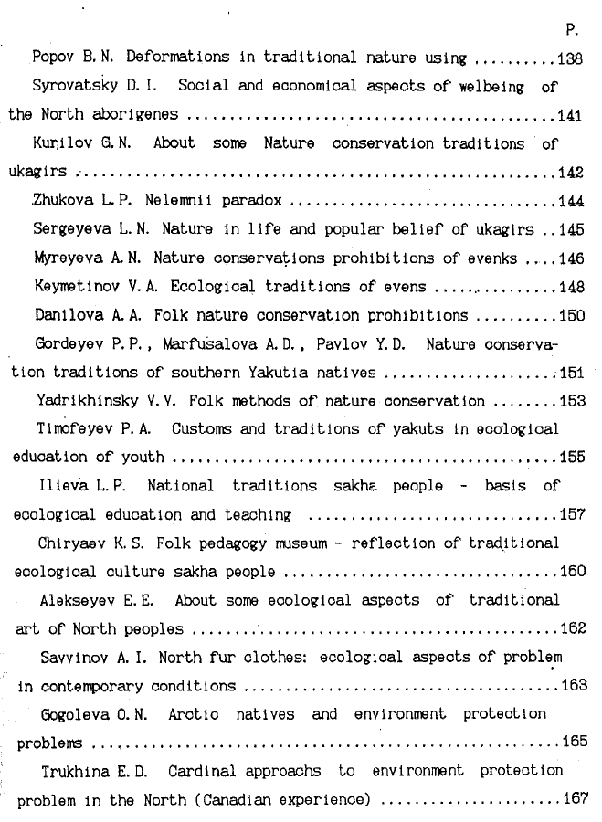 Экологические традиции аборигенов Севера в интересах выживания человечества = Ecological traditions of aborigines of the North in interests of mankind survival : тезисы докладов Международного семинара-симпозиума, 20-22 августа 1993 г. / [редколлегия: Д. Д. Саввинов (ответственный редактор) и др.]. - Якутск : Полиграфист, 1993. - 179 с.