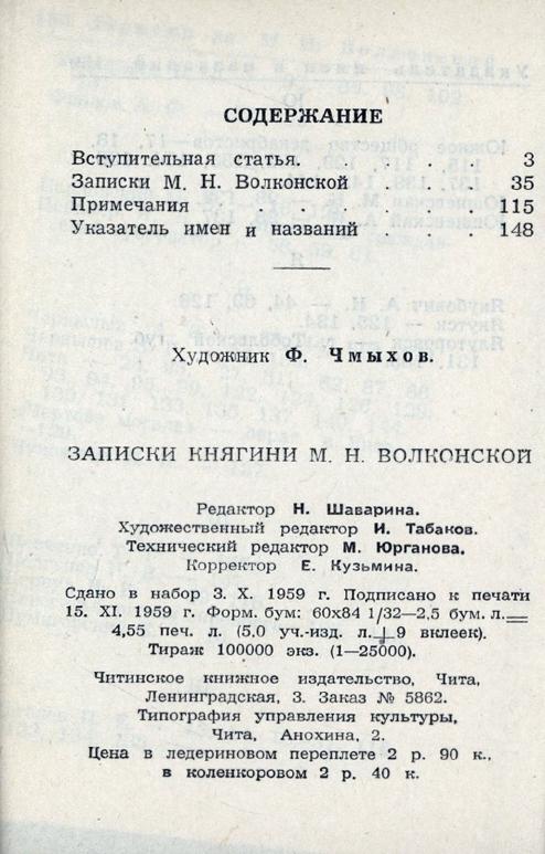 Записки княгини М. Н. Волконской / [вступительная статья и примечания Б. Г. Кокошко]. - 2-е изд. - Чита : Читинское книжное издательство, 1960. - 159, [1] с.