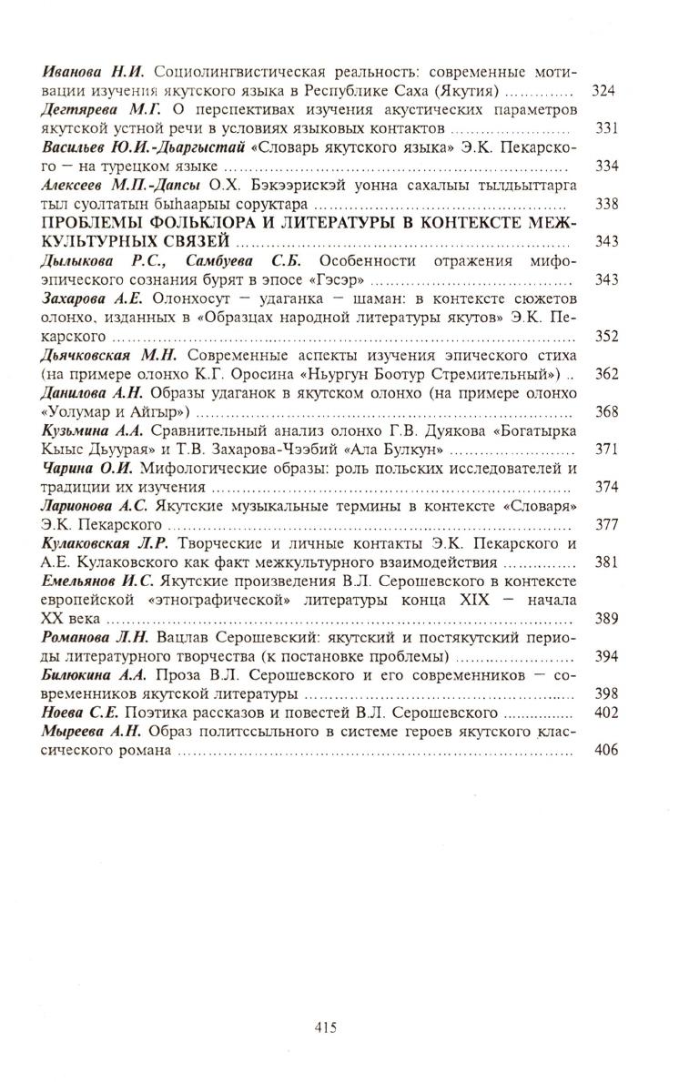 Межкультурное взаимодействие в Сибири: историко-этнографические, лингвистические, литературоведческие аспекты : материалы Международной научной конференции "Польша в истории и культуре народов Сибири", посвященной 150-летию со дня рождения Э. К. Пекарского и В. Л. Серошевского (г. Якутск, 5 ноября 2008 г.) / [редколлегия: С. И. Боякова (ответственный редактор) и др.]. - Якутск : Издательство ЯНЦ СО РАН, 2009. - 415 с.