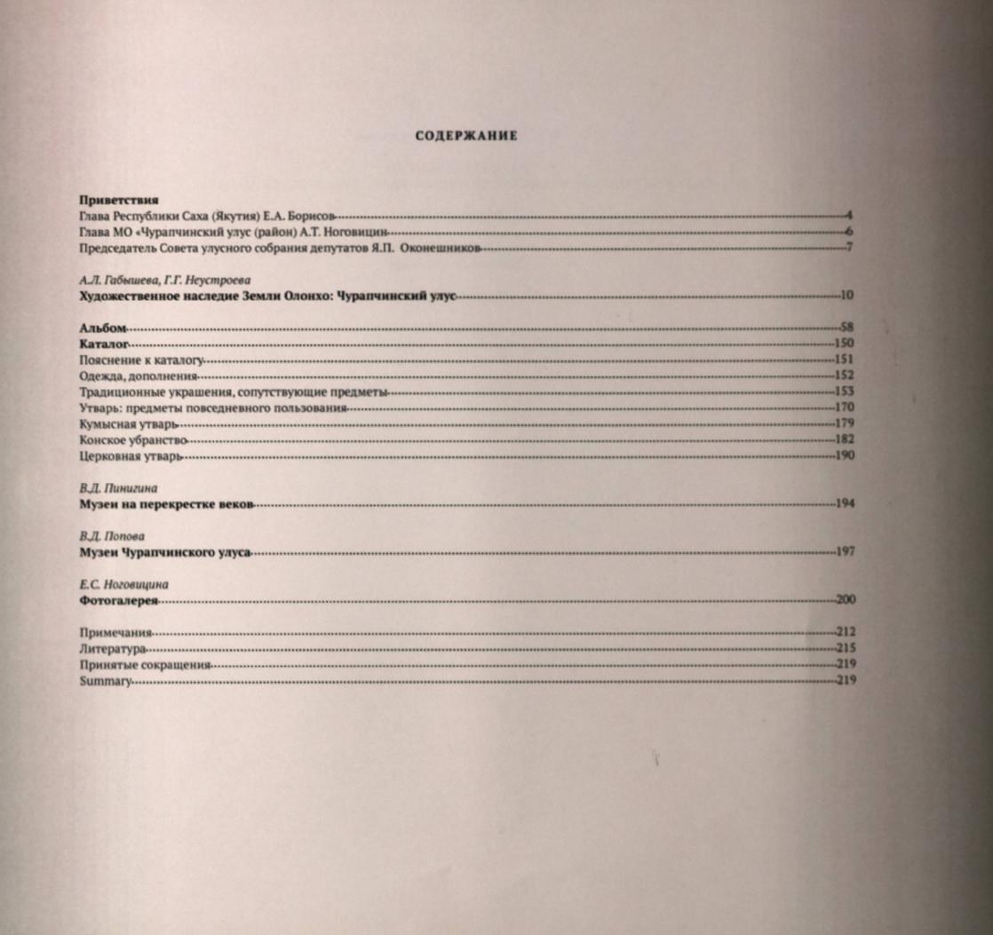 Раритеты Якутии. Художественное наследие земли Олонхо: Чурапчинский улус : [альбом-каталог] / А. Л. Габышева, Г. Г. Неустроева ; [перевод на английский язык Т. Д. Басхардырова; переводна якутский язык Г. Г. Неустроева; авторы вступительной статьи Е. А. Борисов, Я. П. Оконешников, А. Т. Ноговицын; МО "Чурапч. улус (р-н)" Респ. Саха (Якутия), ГБУ ГМХК "Нац. художеств. музей Респ. Саха (Якутия), МКУК "Чурапч. музей истории и этнографии им. А. А. Саввина"]. - Москва : ИП Семенова Н. В., 2015. - 222, [1] с. : ил.