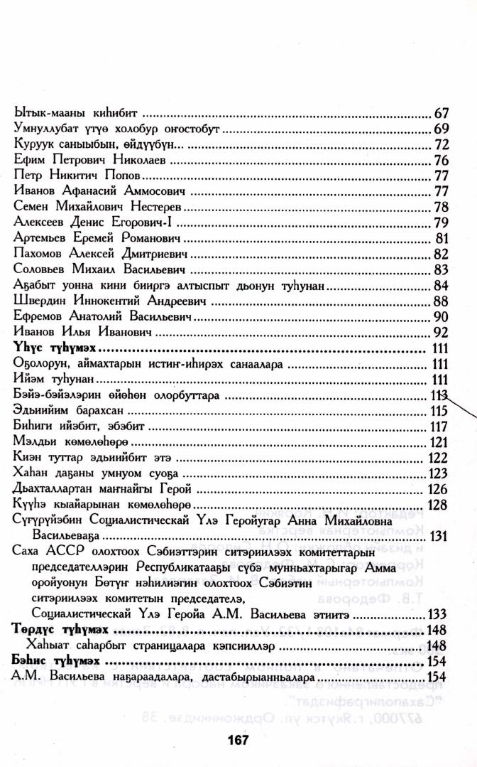 Сэбиэт Аана : Социалистическай Үлэ Геройа А. М. Васильева / [кинигэ матырыйаалын хомуйда Ванифадий Иванович Васильев ; редактор, наардаан бэчээккэ бэлэмнээтэ И. Н. Корякин-Бөтүүнүскэй]. - Дьокуускай : Сахаполиграфиздат, 2006. - 167 с.