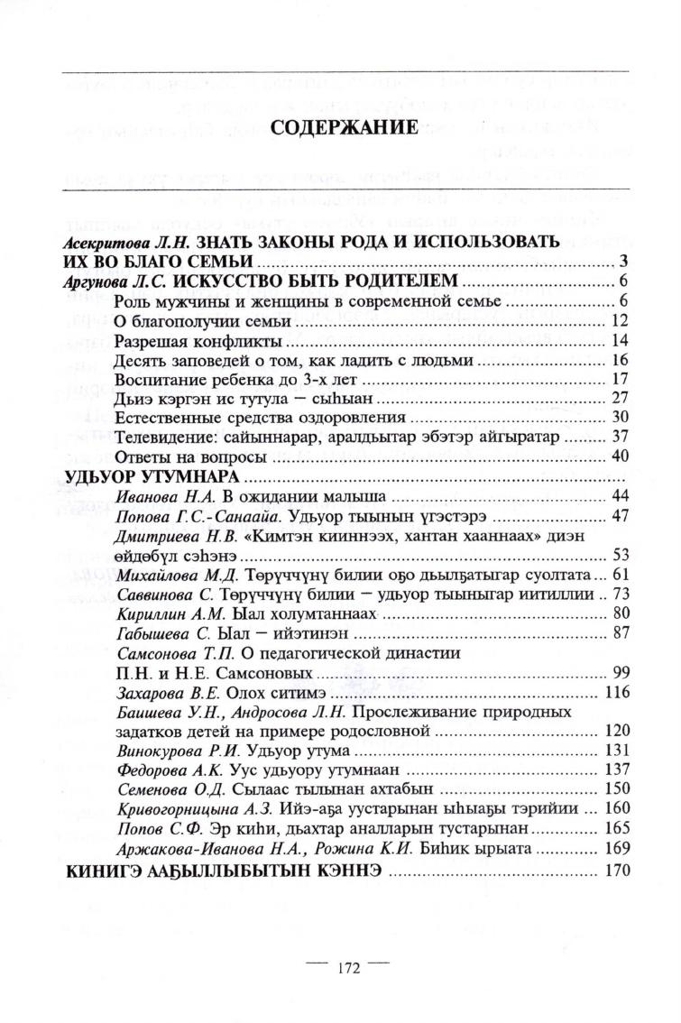Искусство быть родителем : [сборник статей] / Школа родительской культуры семьи [и др. ; автор проекта, составитель Л. С. Аргунова ; редакторы: Е. И. Кычкина, С. Д. Плотникова, О. Н. Сотникова]. - Якутск : Издательство ЯГУ, 2007. - 172 с., [1] л. генеал. схем.