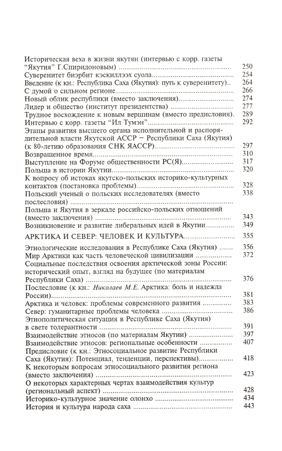 Книга посвящена изучению самых различных вопросов исторического, этносоциального, научного и духовного развития Северо-Азиатского региона Российской Федерации. В нее вошли в основном статьи последнего десятилетия, как опубликованные в различных изданиях, так и издающиеся впервые. Книга содержит также тексты выступлений по важнейшим событиям в общественно-политической, научной жизни республики