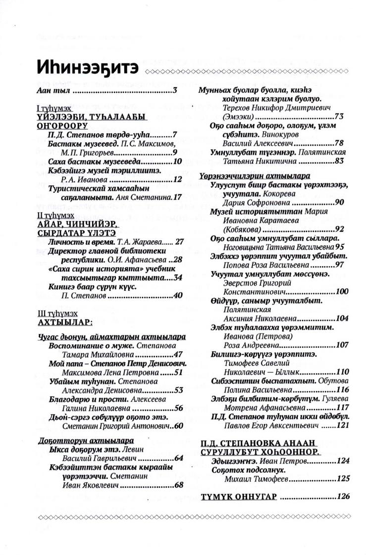 Петр Денисович Степанов : Кэбээйитээҕи музей тэриллибитэ 55 сылынан (1958-2013 сс.) / Кэбээйи улууһун П. Д. Степанов аатынан кыраайы үөрэтэр музей ; [хомуйан оҥордо Е. А. Павлов]. - Дьокуускай [СМИК-МАСТЕР], 2013. - 129 с.