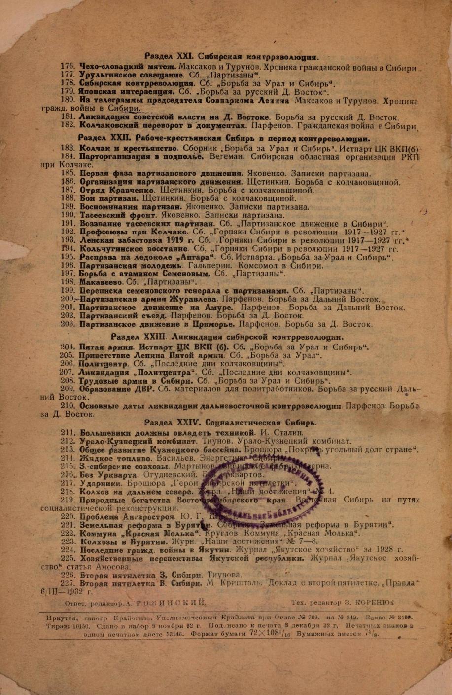 Сибирь : историческая хрестоматия / М. Гудошников ; редактировал книгу Сорокин И. ; ответственный редактор А. Ровинский. - Москва ; Иркутск : ВостСибирское краевое государственное издательство, 1932. - 243, [1] с. - 10150 экз.