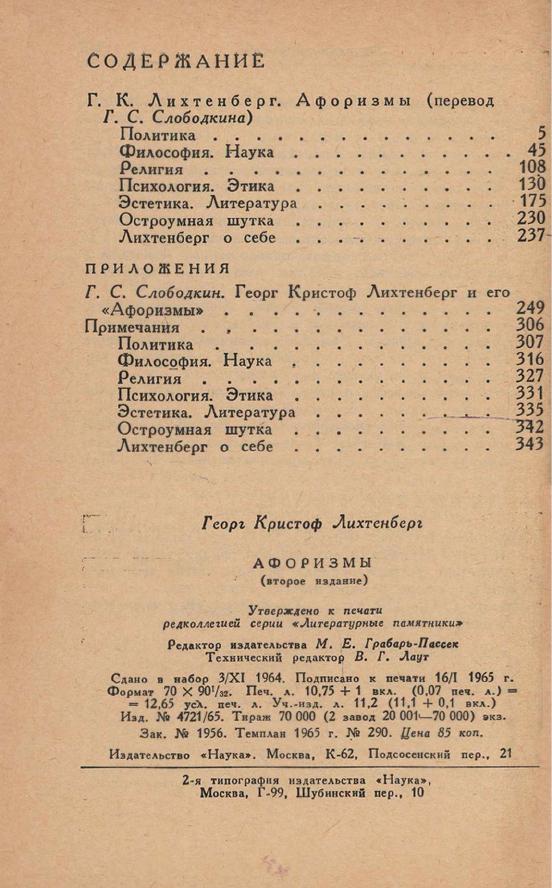 Афоризмы / изд. подгот., [пер. и написал послесл.] Г. С. Слободкин. - 2-е изд. - М. : Наука, 1965. - 344 с., 1 л. портр.