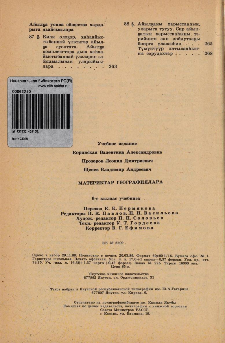 Саха сиринээҕи кинигэ изд-вота, 1989. - 271, [1]
