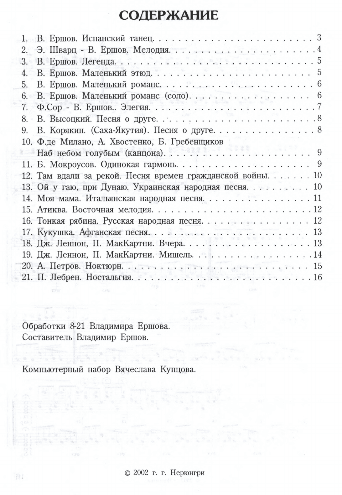 Первый сборник пьес и обработок для шестиструнной гитары нерюнгринского педагога и композитора является ощутимым вкладом в методику преподавания гитары для начинающих музыкантов. Доступность фактуры изложения, яркий мелодизм и самобытность является основным достоинством этого сборника, ставя его в один ряд с аналогичными изданиями известных российских гитаристов-педагогов