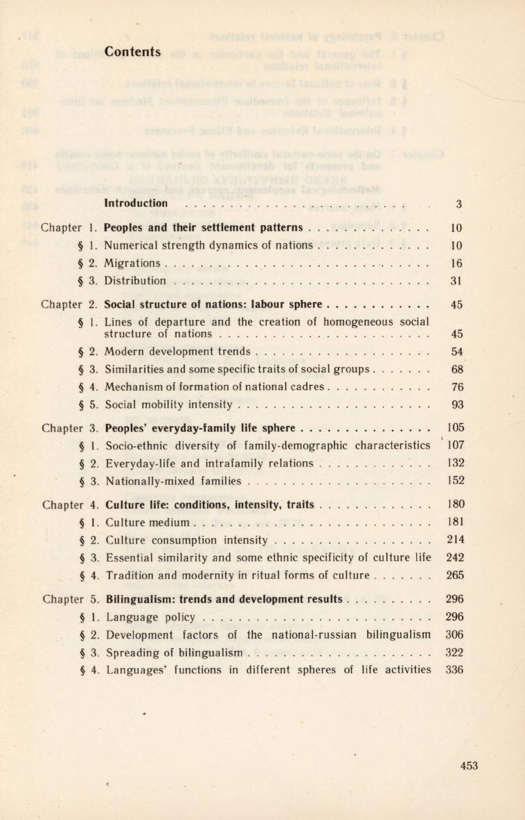 Книга — результат широкомасштабного этносоциологического исследования, проведенного в разных районах страны: в РСФСР, Узбекистане, Грузии, Молдавии, Эстонии и др. В ней рассказывается о жизни советских людей различных национальностей, об общем и национально-особенном в их социальном положении, занятиях, трудовых навыках, профессиональных и культурных ориентациях, нормах семейной жизни. По материалам книги читатель может судить, в каких сферах общественной жизни национальное своеобразие удерживается стойко и где доминируют общие для всех советских народов черты, как осваиваются языки, как меняется психология национальных отношений