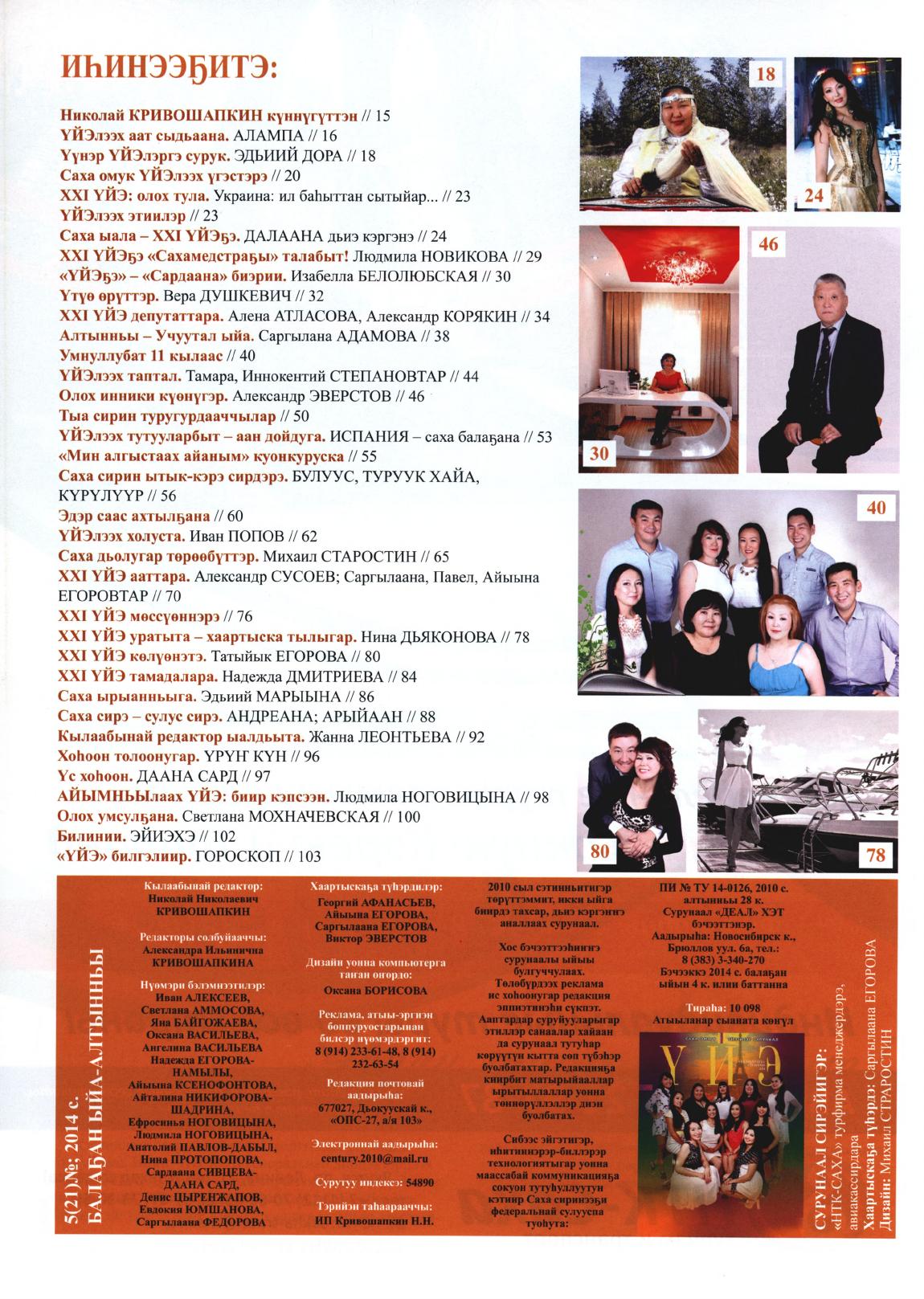 2014, N 5 (21), балаҕан ыйа - алтынньы. - 2014. - 104 с.