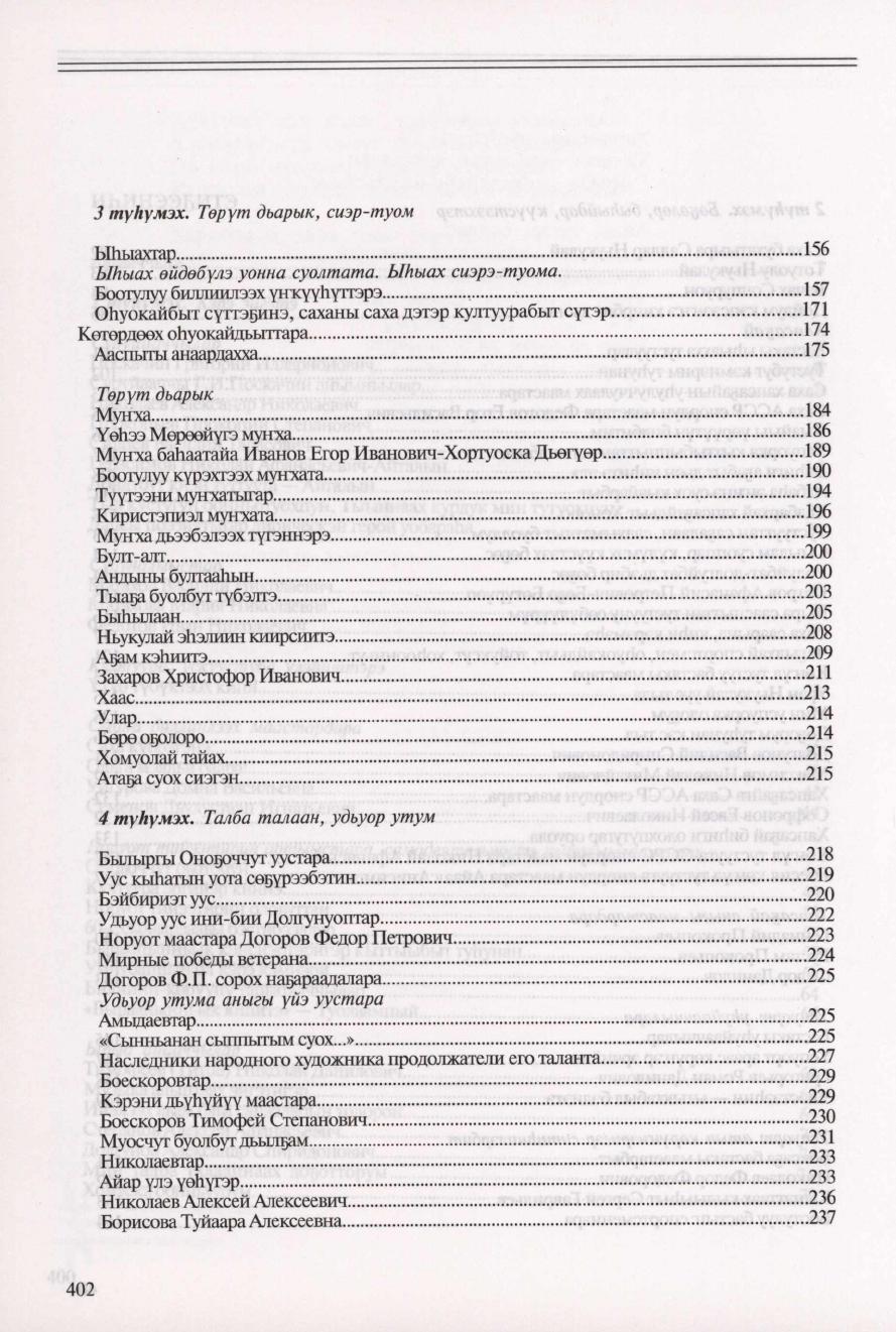 Боотулуулар / [хомуйан оҥордулар: Г. Н. Саввинов, К. Н. Саввинова, М. П. Алексеев-Дапсы ; редколлегия: Г. Н. Саввинов, М. П. Алексеев-Дапсы]. - Дьокуускай : Медиа-холдинг "Якутия", 2011- . - 24 см. В первой части книги собраны материалы из архивных документов и научных источников, народных преданий и легенд, а также воспоминаний людей старшего поколения о прошлом ботулунцев - одного из древних родов народа саха. Материалы об истории Ботулинского наслега в послеоктябрьский период, сведения и воспоминания о ветеранах колхозного и совхозного производства, участниках Великой Отечественной войны 1941-1945 гг., а также об известных людях Ботулунского наслега будут включены во второй части книги "Ботулунцы". Ч. 4. - 2013. - 398, [1] с.